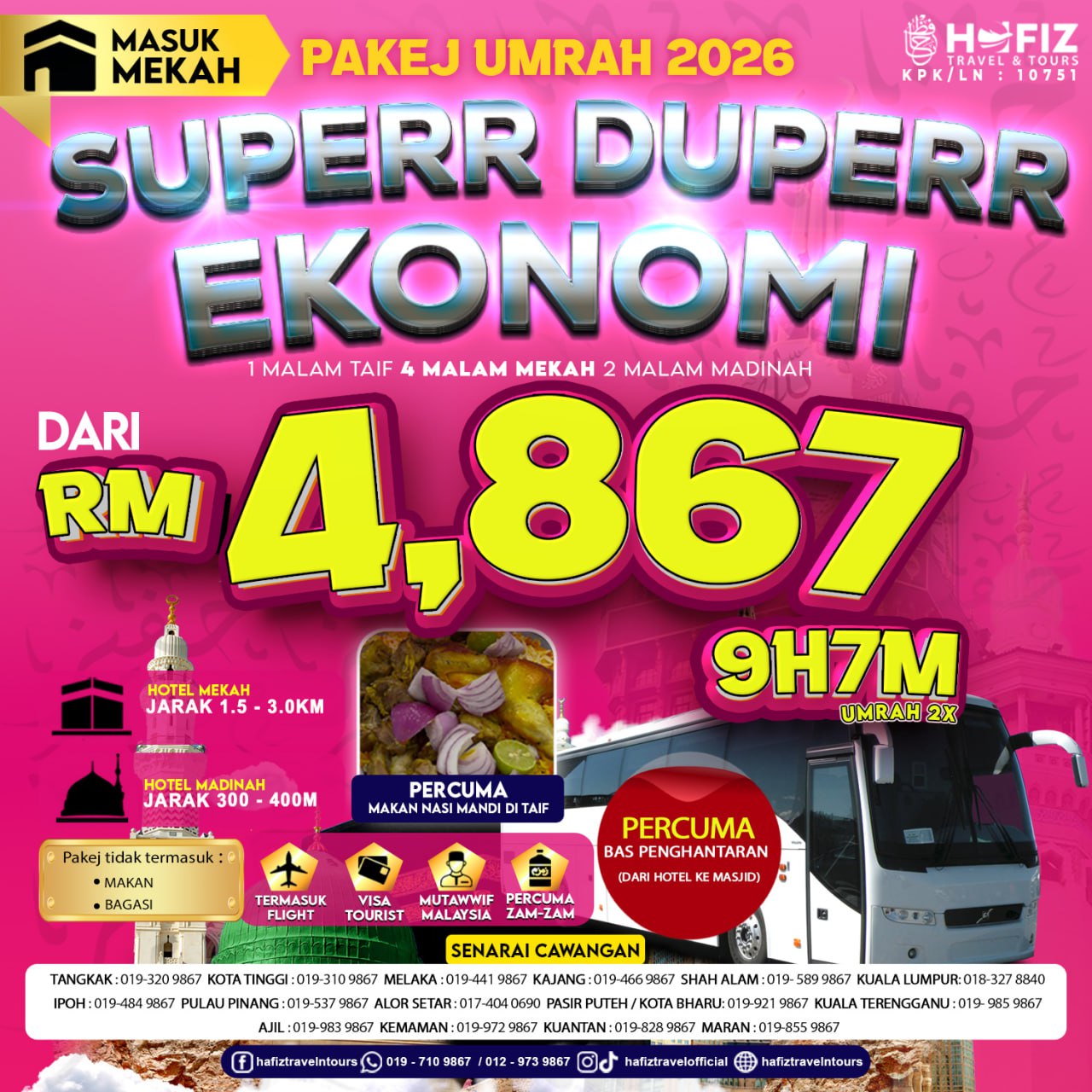 Hafiz Travel & Tours komited membantu anda menunaikan ibadah umrah dengan penuh ketenangan dan keselesaan. Kami memastikan setiap perjalanan diurus dengan amanah dan profesional.